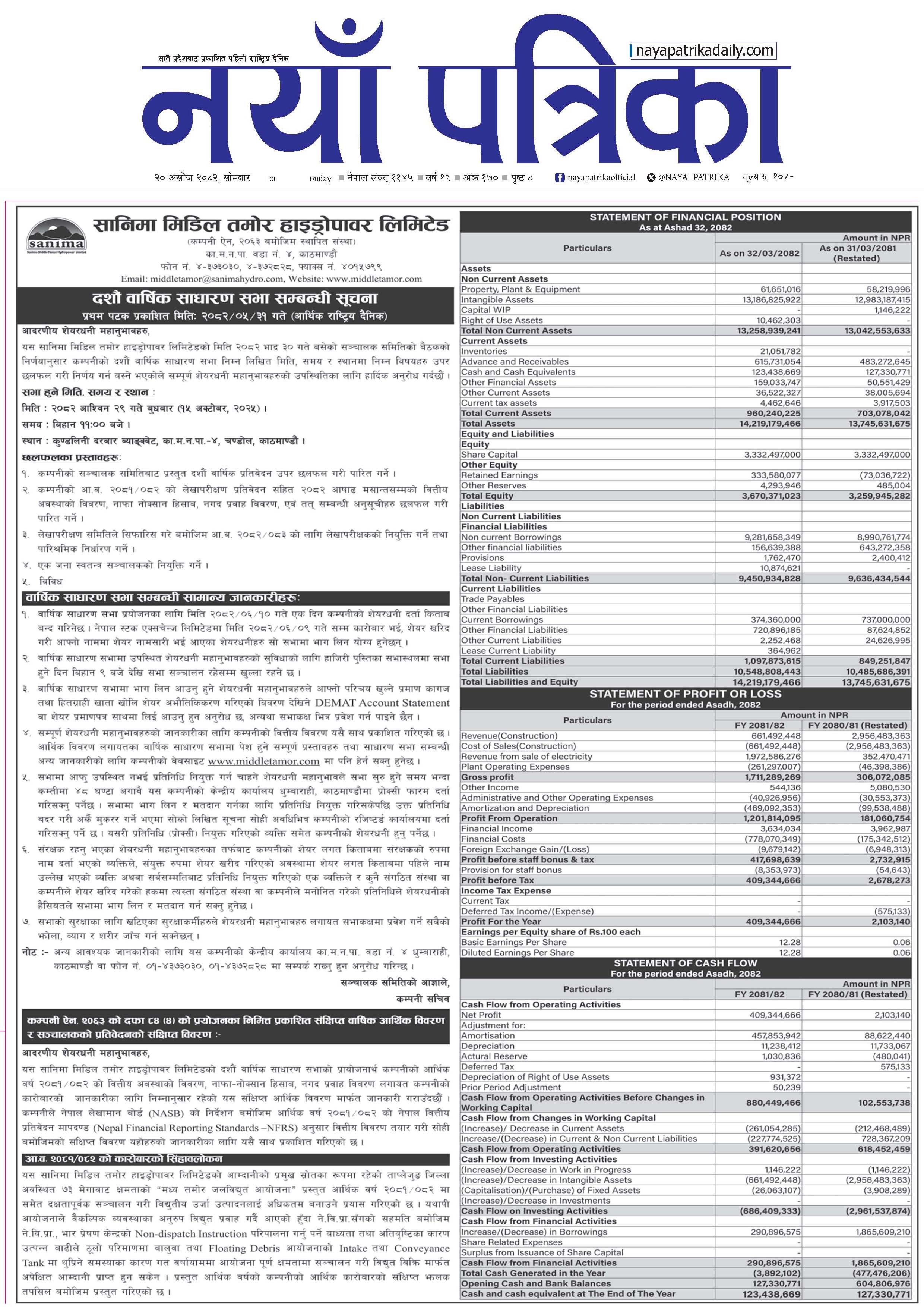 The Generation License of the Project was obtained initially for 54 MW on 5 June 2017, and subsequently the design was revised and generation license for the revised capacity of 73MW was obtained on 10 December 2018.The main objective of this company is to build, own, operate and transfer Middle Tamor Hydropower Project (73 MW) located in Taplejung district of Nepal.